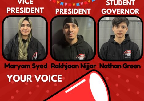 We are pleased to announce the winners from our Students’ Union Elections! President: Rakhjaan Nijjar Vice President: Maryam Syed Student Governor: Nathan Green